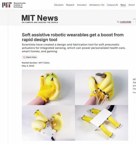 麻省理工图中这个可以帮助康复者持物,也能把别人摸大腿的手感通过网络传送,实现远程代摸。