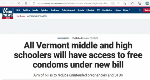 狐狸新闻消息:为了减少意外怀孕和性传播疾病,美国福蒙特州为中学生免费提供避孕套——嗯,阻止不了的给个套