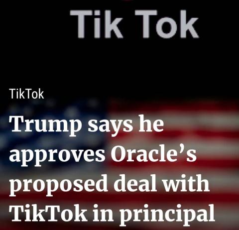 原则上批准”神谕“公司和“踢投”公司的建议交易--中文叫神谕公司多酷,为啥叫甲骨文公司?--Oracle tiktok, 以后叫神抖、或神忒、神玩……