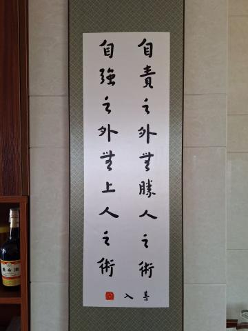 封建糟粕:胜人、上人----解释了比如有人虽穷,也没向人借钱,还是被冷眼和欺负,又如越积极做事的越容易被当奴才看待---挂幅底下还写着:入善
