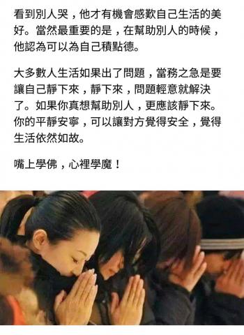【教堂和寺庙】 中国人信的东西很多,包括财神菩萨、气功大师、名人、金钱、专家都信,什么都信,恰恰也是什么都不信。虽然没有信仰,但中国人非常有“道德”,不过这道德很大程度上的不是来约束自己,而是用来约束他人的。